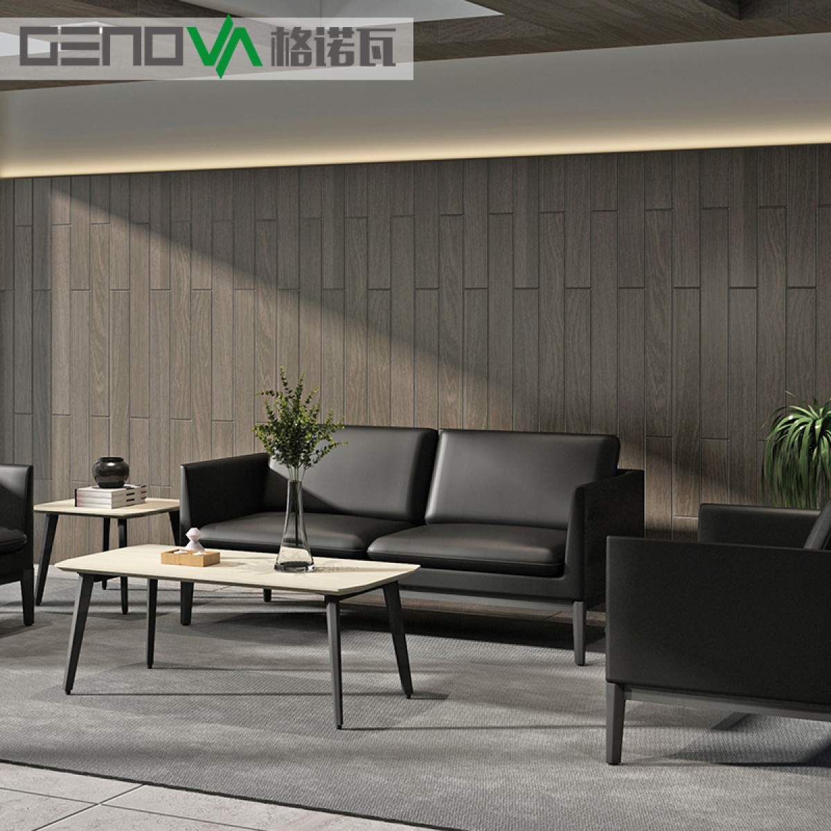 办公沙发简约现代三人位单人位组合商务接待皮艺小户型沙发